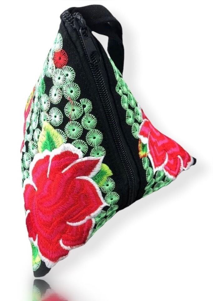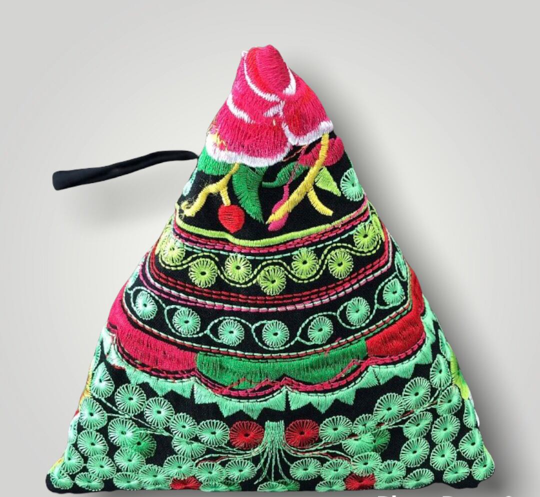 文字の代わりに刺繍であらわすことで、民族の歴史や誇りなどだけでなく、モン族の伝統技術を次の世代に伝えていきました。その伝統技術を用いてハンドメイドで作られたのがこのテトラミニバッグです。