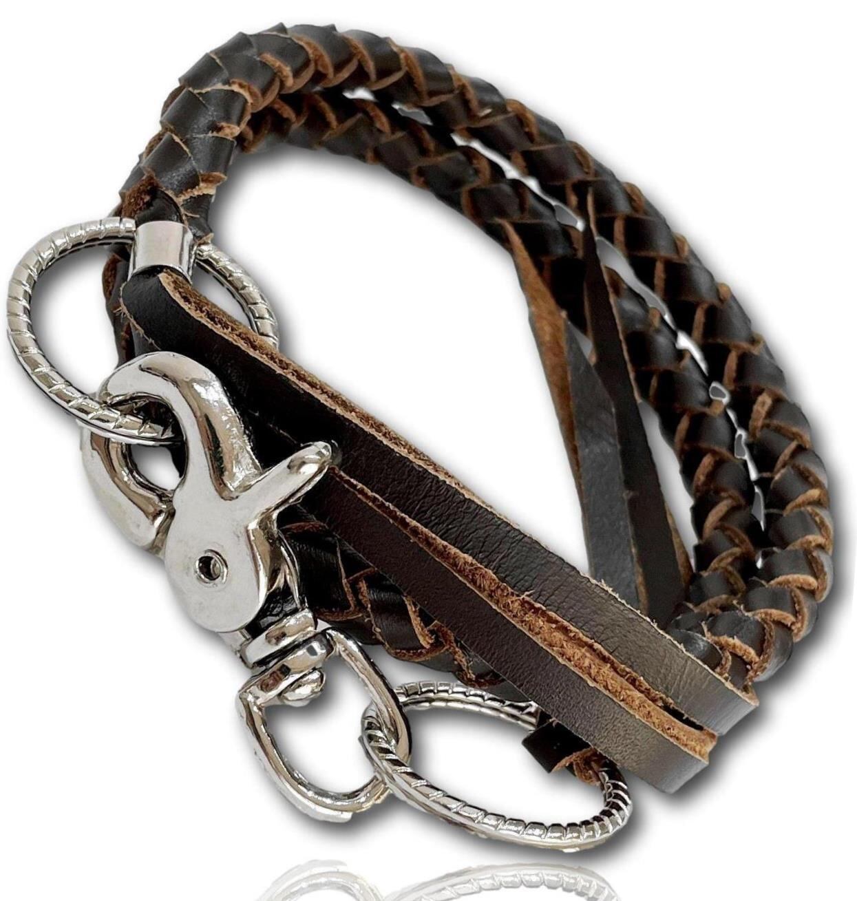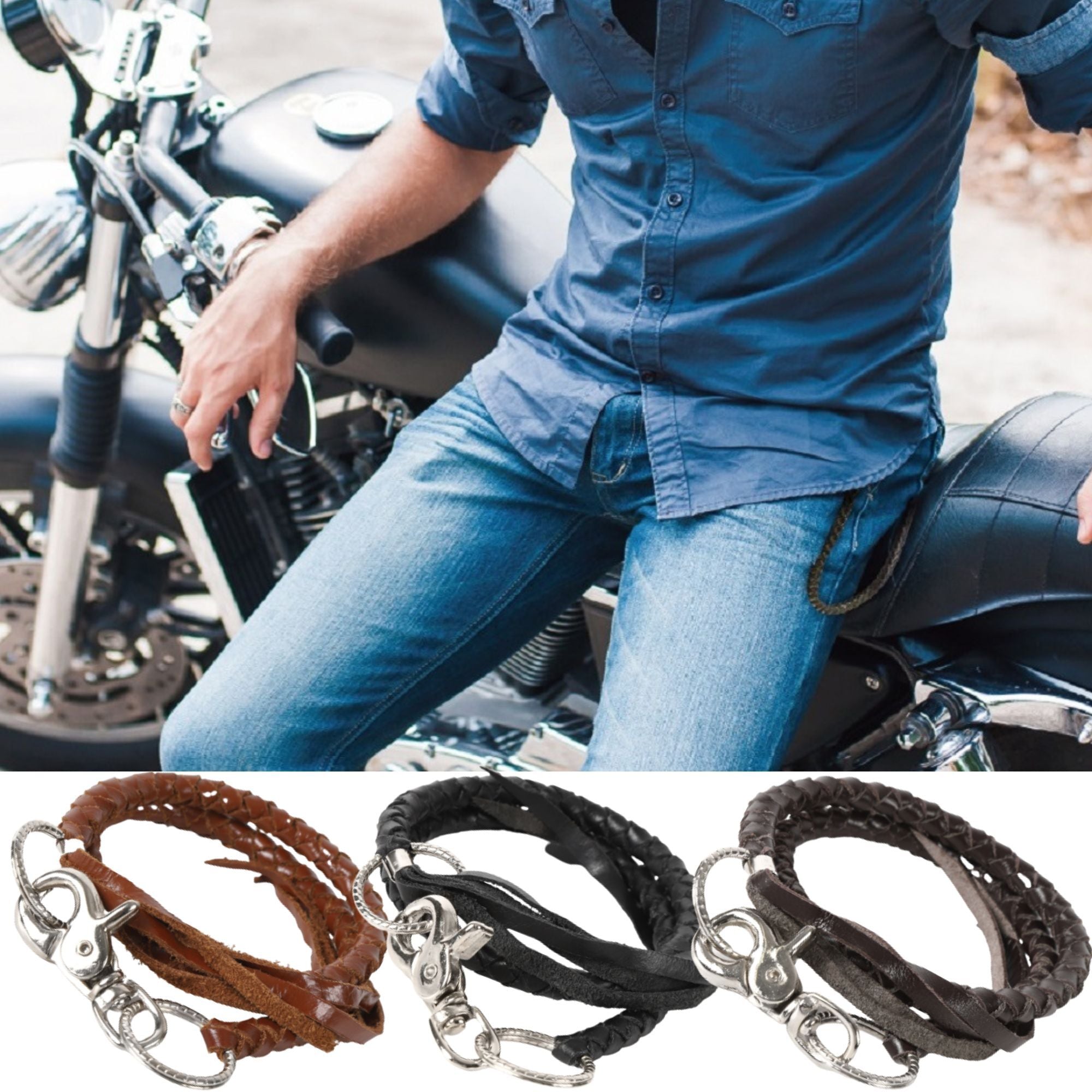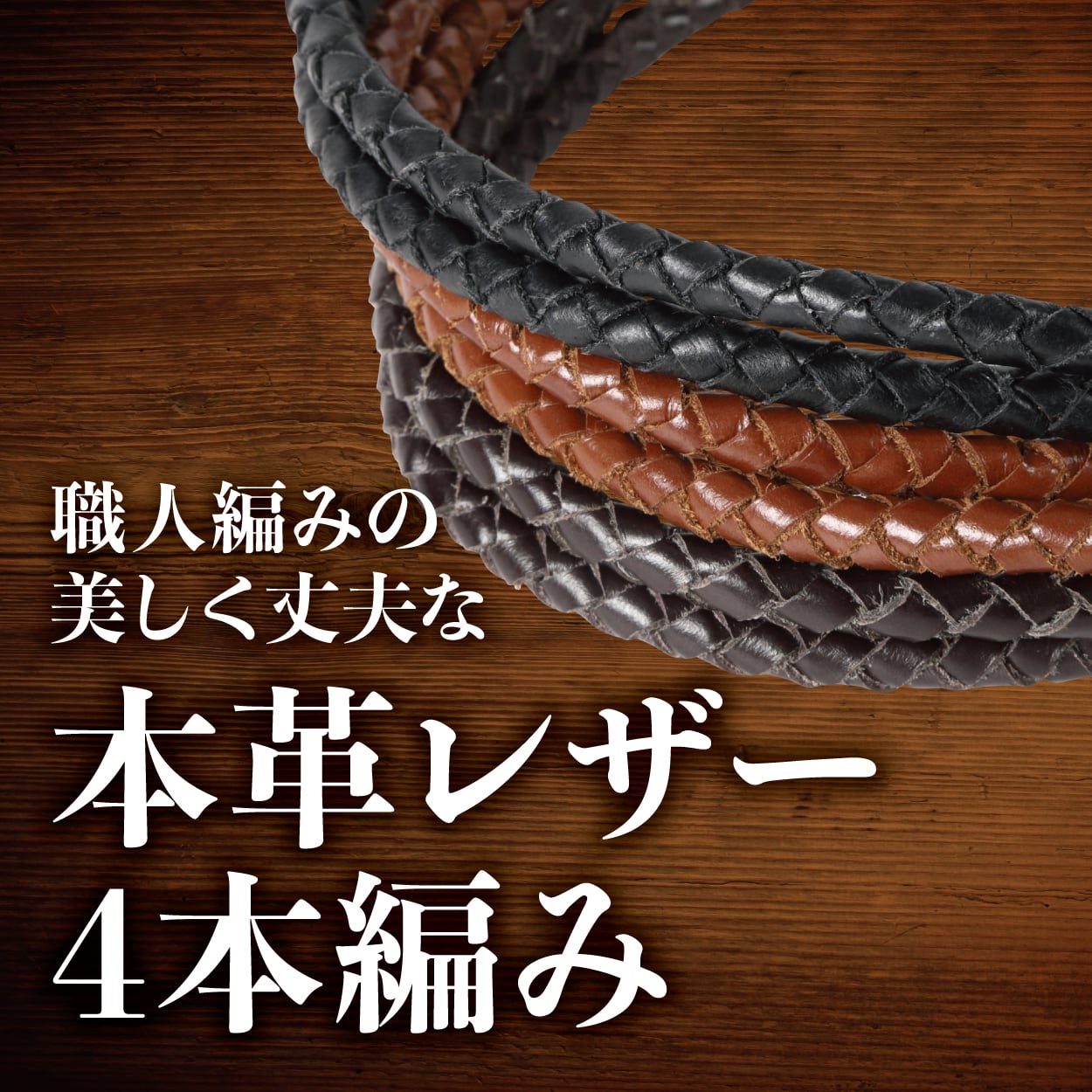 牛本革の中でも高級感のあるオイルレザーを使用し、職人がひとつひとつ丁寧に作製したハンドメイド品です。本革の魅力は何といっても「使い込むほど味が出る」こと!4本編みのデザインは派手すぎず、でもおしゃれなデザインです。また、バイクや車などにあたっても傷をつける心配もなく、手すりやドアにぶつかっても金属音を立てないところも◎