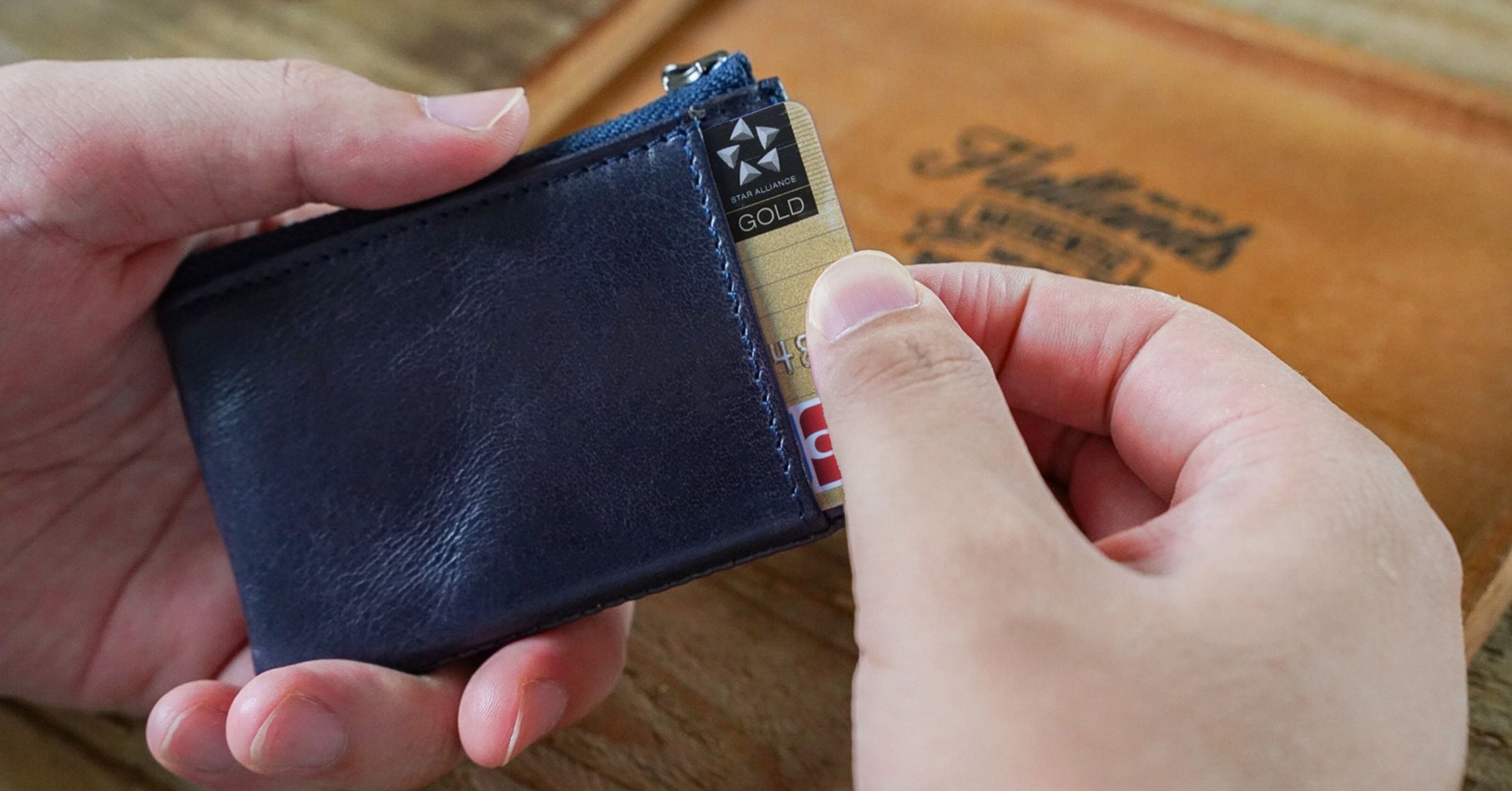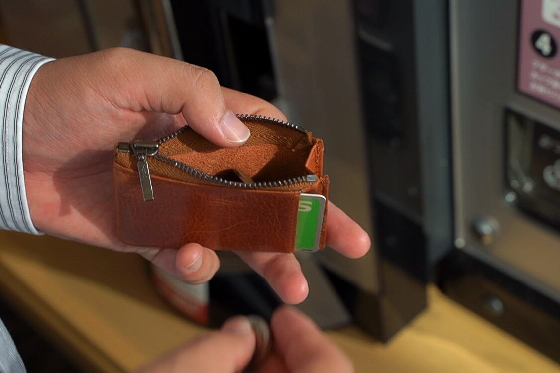 「カードぴったりサイズ」で普段使いのカード2枚と小銭がコンパクトに持ち歩けます。また、カードを取り出しやすくするため、ポケットから出るカード部分も少なすぎず、でもしっかりとポケットに収まるサイズにこだわりました。